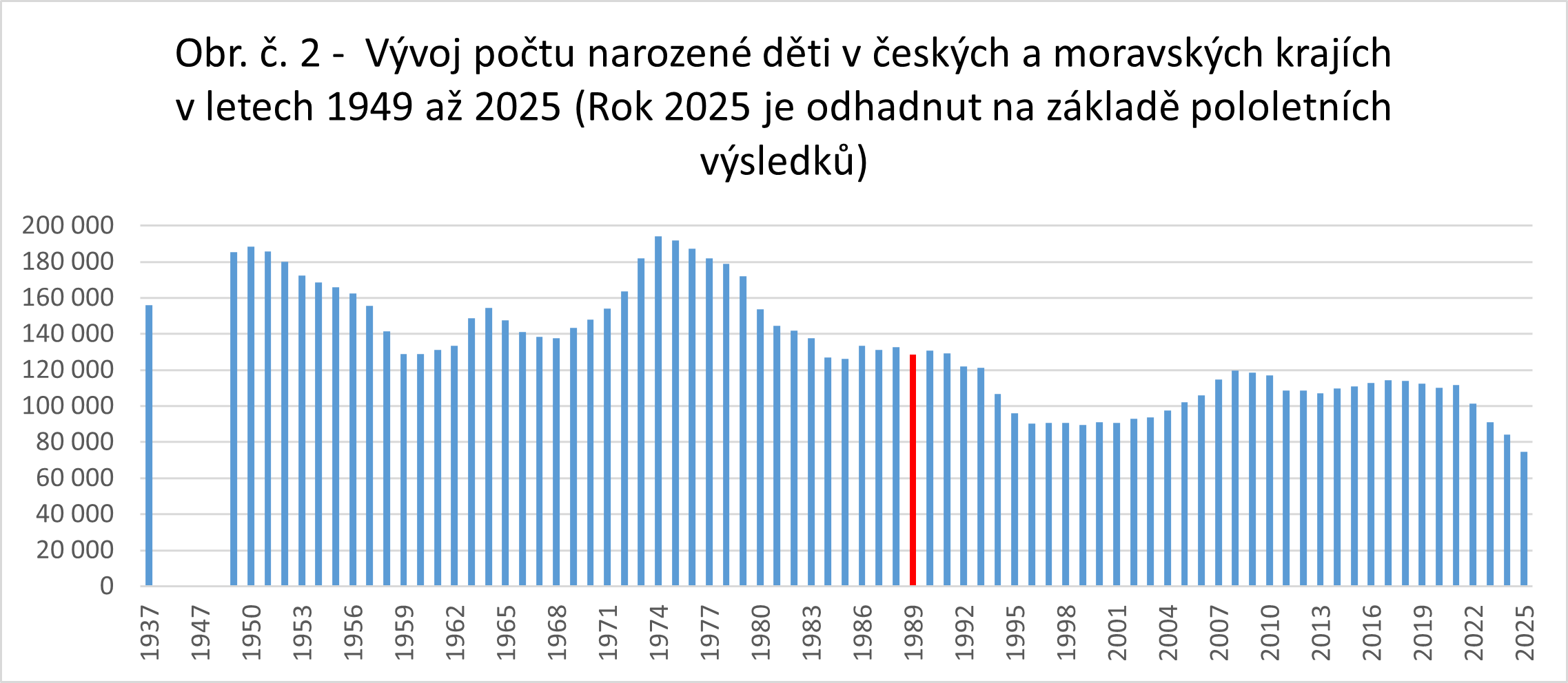 K uvedenému grafu přidejme ještě graf vývoje počtu narozených dětí.